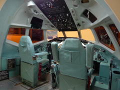 見学者用のフロアには飛行機の模型やらファーストクラスのシートやら、旧機種の実物のコクピット、エンジンの模型などが展示されています。