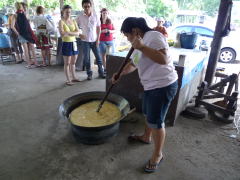 こんな風に煮詰めたココナッツを大鍋でかき混ぜていくと・・・