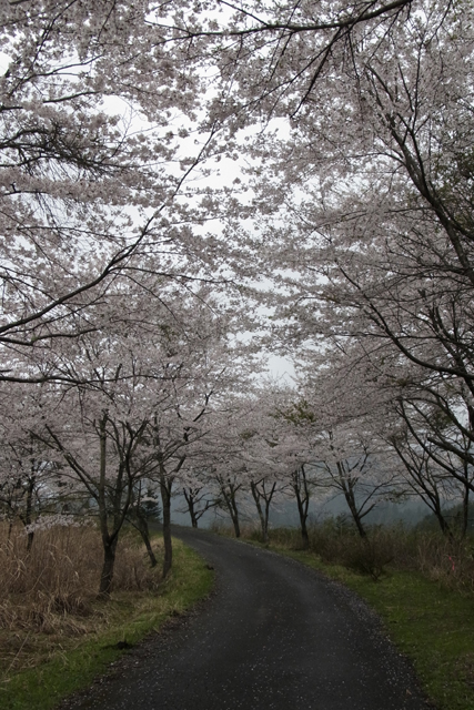 頂上を越えて西側に下ると、桜並木が広がります。