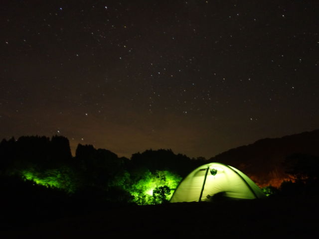 【写真4】 テント場の星がとても綺麗だったので写真を撮ってみた。高感度で撮ったので、肉眼ではここまで多くの星は見えませんが。