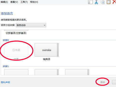 中国語で日本は「riben」なので、上記が象の通り「R」欄を探してみてください。