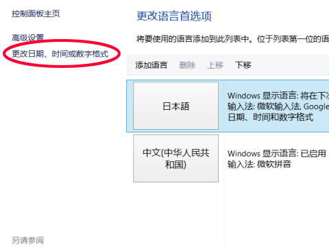 また、この画面で上にある言語が優先されるので、もし日本語が下にある場合は日本語を選択し「上移」をクリックして一番上まで移動しておきます。