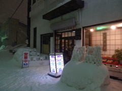 小樽雪あかりの路を見終わったあと、雪が降る中で捕まえたタクシーの運転手さんに「この辺で安くて美味しい魚介類が食べられる店にお願い!」と頼んだら連れてきてくれたのが「魚真(うおまさ)」です。