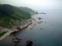 ルートはほぼ海沿いの平坦で気持ちのよい道です。 季節がいいため、途中自転車やバイクツーリングの人たちが結構いました。 しばらく走ると、風間浦村に入ります。ここには本州最北端のいで湯「下風呂温泉」があります。当然、入浴しないわけにはいけません。 |