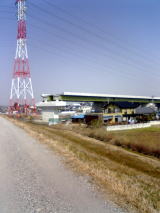 しばらく走ると川越工業団地が見えてきました。 | 工業団地の中に謎の構造物が! 携帯のアンテナの様ですが木っぽい偽装が施されています。 鳥がとまってるし。 |