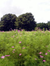 | コスモスが咲いてたり、 | 雑木林の中のサイクリングロードを走ったり、 | フリーマーケットもやってました。 |