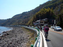 | それも、この景色ですから仕方ないカモ? | 山裾と海の隙間を走っていきます。 | ガードレールが低い場所では、海へ落ちないように注意が必要(笑) |