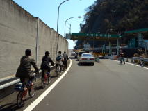 | 海沿いの国道135号を南下していきます。 | 真鶴有料と旧道の別れ道。 ここで4名の方が旧道(ヒルクライムコース)へ向かいます。 みなさん根性ありますね〜(笑) |