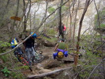 せっかく下りだと思ったのですが、標高差150m程の下りほとんどが階段で、早くも「修行よりキツイ」との声が聞こえてきます(笑) 確かに、ココまでの道のりではほとんど自転車に乗った記憶が・・・? |