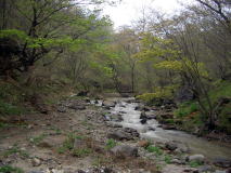 | 下った先は、粕川の流れ。 気持ちよく流れる渓流を見て、ほっと一息。 |