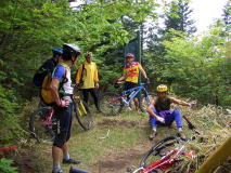 僕は基本的に「ちょっとでも怖いところは下りる」という、ヘタレポリシーの持ち主ですが、他の方は「乗れそうだったら行ってみる」という方がほとんど(笑) そして、この休憩の後のルートは、その「乗れそう」な感じだったのですが・・・ |