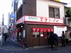 | 前回走った天王川遊歩道を上流方面へと向かい、途中から遊歩道をそれて北浦和駅西口へ向かいます。 | 国道17号線沿いにある「百歩ラーメン」 お昼時だけあって6,7人の方が並んでました。 |