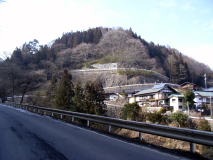 暮坂峠から冬枯れた雑木林の中を下り終えると、国道292号に到着です。 |