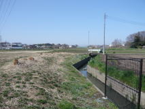 この付近でも流れに沿って走ることができないので付近の道を迂回しながら流れをたどります。 帰ってから気が付いたのですが、実はこの辺りで流れが再び二つに分けれていたようです(下の地図を拡大してみてください)僕はそれに気づかず一方の流れだけを走ってきましたのでそちらの様子を〜 |