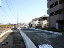 | 県道87号より南側では、川を暗渠化した上に一般道を造っていました。 | 完成している部分はこんな感じになっており、かつてここが川であったことは全く分かりませんね〜 | そして、突き当たりで突如川が現れます。変な道ですね〜。 |