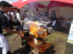 コースは一旦運河沿いを離れて芦屋市総合公園の周囲をグルッと一回りする形になってます。 というわけで、ちょっと寄り道♪ 中に入って聞いてみたところ、あしや・いち(ASHIYA MARKET 2010)というイベントが開催されているみたい。内容は、芦屋付近にあるお店が集まって一日だけ「市」を開催するというもので、ちょっと良い店とかも出品しているみたい。これはお昼を食べるのにちょうど良いですね♪ |