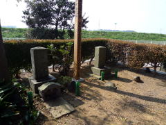 | 記念館から300mほど北にある専称寺には間宮林蔵のお墓もあります。ずいぶん立派な塚ですが、 | これは記念碑で、実際のお墓はその裏手に小さくひっそりと建てられています。 | 広大な田んぼを走り抜けて谷井田の街へ向かいましょう。 |