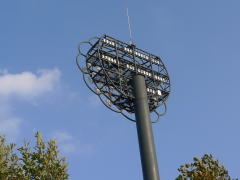 | 茎崎運動公園の野球場にあった照明なんですが、妙な形の飾りが付いています。どうやら点灯時にひまわりの形になるみたい!? | 再び牛久沼。こちらは谷田川(東)ですが、こちらの方が流れが大きく雄大な景色ですね~ | そして途中の畑で発見した謎の物体!?これは土中から堀りだした落花生を乾燥させているもので、その名も「ボッチ」というそうです。 |