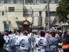 | 今日は小田原市内4神社の例大祭が行われているらしく、威勢の良いかけ声とともにお御輿がたくさん練り歩いていました。 | こちらは別の御神輿。一度担いでみたいんですよね~。どっかで担がせてくれないかなw | そして街中でさりげなく見つけた。素敵な床屋。センス良さそう♪ |
