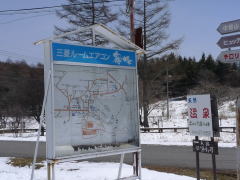 | なんか「友愛」って書いてあるので民主党かと思ったら、日本禁煙友愛会という団体の禁煙啓発看板でした。タバコ嫌いとしては心から応援したいw | 角間川の上流付近にあるダム。白い雪の中に深緑の湖面がキレイなのです。 | 標高が高くなるにつれ周囲の木々の背が低くなり見晴らしが良くなってきましたよ。 |