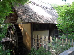 | でもせっかく深大寺に来たのだから江戸時代から名物として知られる深大寺そばを食べていきましょう。で、ちょっと外れですいてるお店に入ったのですが・・・ | 大サービスの煽りにつられて注文した天ざる:1500円。いや正直、そばは味も香りもごく普通だし、コシが無くて柔らかい・・・。店の選択を誤ったか!? | かつてそばを引いていた水車小屋をイメージして作られた水車小屋とかもあったりします。 |