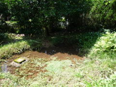 | 第七中学校南側の湧水は「沢の台ホタルの池」として保護されているようです。 | その湧水はこんな風に近所の方が自由に使えるようになっています。 | 大沢緑地内にある湧水はわさび田として利用されています |