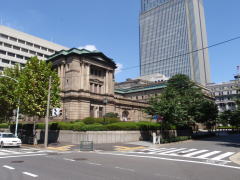| 休日の丸の内のオフィス街はとても静か~。それにしてもこれだけのビル群の中に首塚が現存しているというのはある意味ビックリですね! | さらに進んで日本銀行前を通過。ところで日本銀行は、上から見ると「円」の形になっているというプチトリビア♪ | さらに日本の道の原点日本橋。北斗七星ルートにはかなり重要スポットが並んでいるんですね~ |