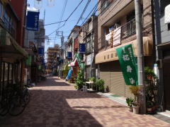 近所の「おかず横町」は休日のせいなのか閉店している店が多く寂しげな商店街でした。 |
